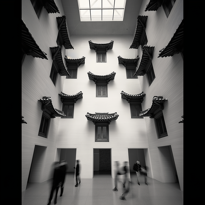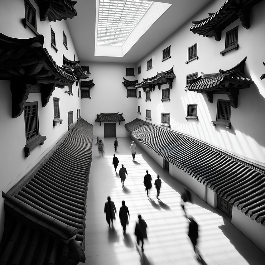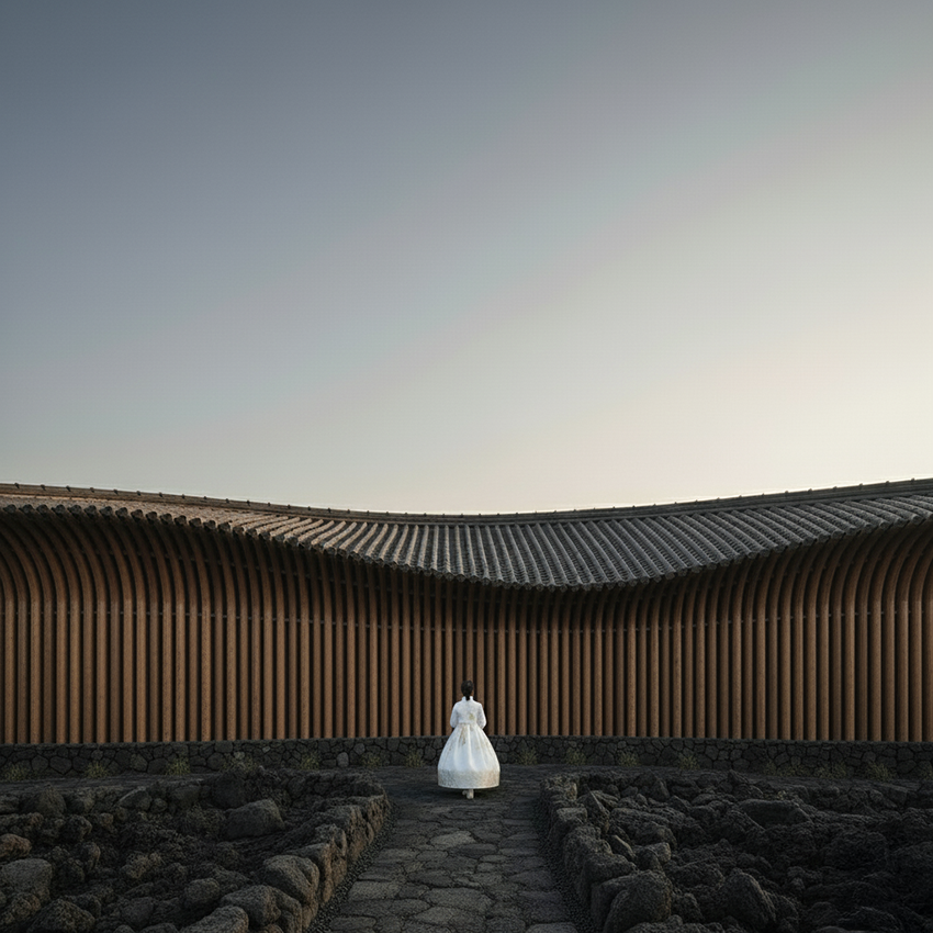비 오는 날 기와에서 떨어지던 물소리, 처마 밑 그늘에서 느껴지는 서늘함, 방 안에 번지던 한지 창의 부드러운 빛(어쩌면 저의 세대가 어릴 적 한옥을 자연스레 경험한 마지막 세대가 될지도 모르겠습니다). 이 기억과 감각의 층위를 현대의 건축 언어에 겹쳐보아 전통과 현대가 미묘한 합치에 이를 수 있는지 실험하고 있습니다.